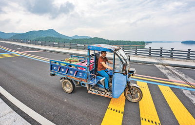 “现在坐车走大桥去新余市区只要半个小时。”宋家新说。“不光时间短,路也更好走。”一旁的村民王阳平接过话茬,“过去要从环湖公路另一边绕,有的地方弯急坡陡,走大桥进城就平缓得多。”