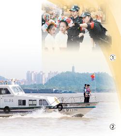 图①:福建省泉州市公安局鲤城分局女子巡逻队队员为小游客指路。