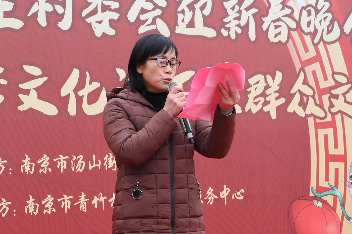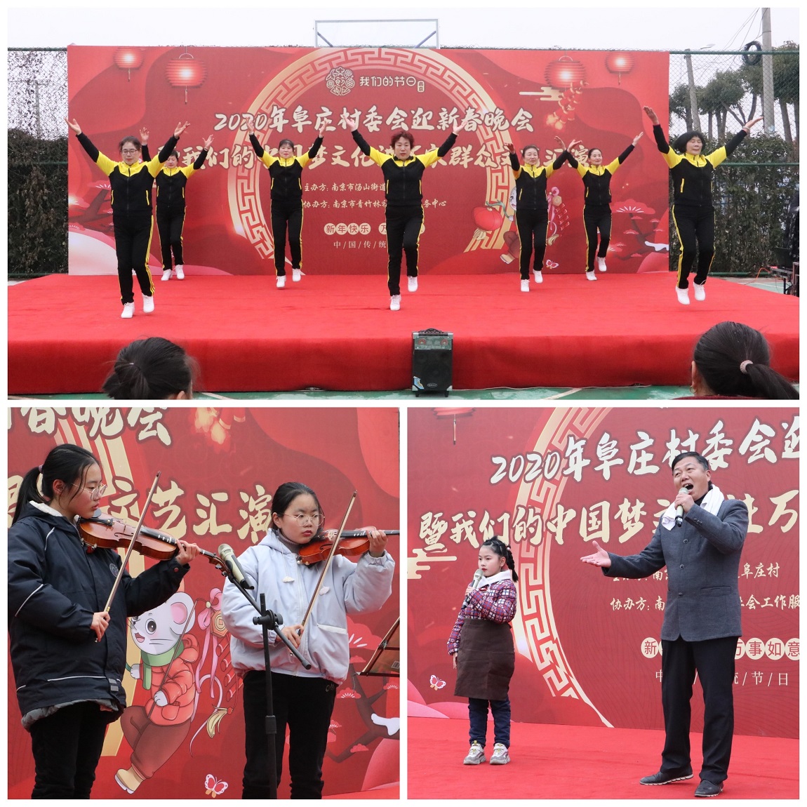 金猪辞别,玉鼠迎新,又是一年新来到。春节是中华民族最隆重的传统佳节,文化意义深远悠长。为弘扬中华传统文化,在除旧布新,喜迎春节之际,近日,江苏省南京市江宁区汤山街道阜庄村委会开展迎新春晚会暨我们的中国梦文化进万家群众文艺汇演,老少村民齐聚一堂,共迎新年,共祝未来。