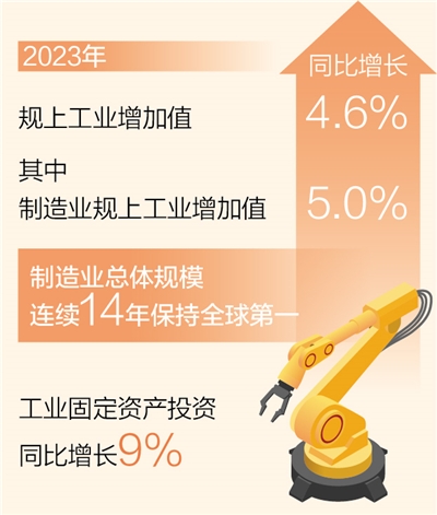 我国制造业总体规模连续14年保持全球第一(新数据 新看点) 2023年规上工业增加值同比增长4.6%