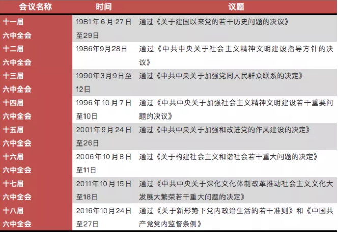 政知君注意到,改革开放以来已经召开了8次六中全会,主题都是聚焦意识形态问题、党建问题。